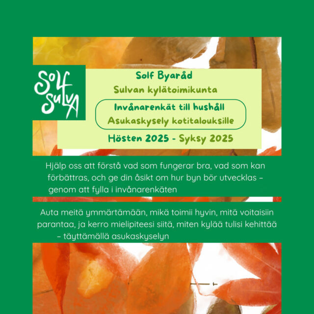 Solf är en charmig och aktiv by i Korsholm, där tradition möter framtid. Här hittar du en stark gemenskap, vacker natur och ett rikt föreningsliv. Med närhet till både stad och skärgård är Solf en plats där du kan trivas, vare sig du är infödd, nyinflyttad eller på besök.