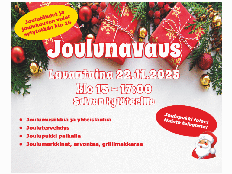Tervetuloa kylän joulunavaukseen lauantaina 22.11 klo 15-17.
